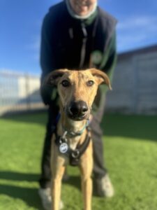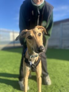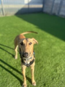 Once he feels comfortable around you, his cheeky and mischievous personality does shine through. He is boisterous, full of energy (as well as legs!) and loves to zoom around the paddocks chasing after his squeaky toys. He does lack manners and social skills when it comes to meeting other dogs so he will need a committed owner who are prepared to work on his training and help him become a more distinguished gentleman.
