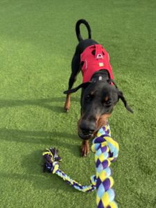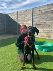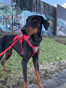 Cruiser is a happy, confident fun-loving boy with a great personality and big heart. He’s your typical, goofy Doberman who loves being around people and brings plenty of entertainment with those who spend time with him. His love for company means he does struggle being on his own so he would really like his new owner to keep him company all day until he learns it’s okay to be left.