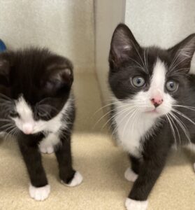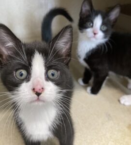 Gin & Tonic are an adorable brother due who are very bonded to one another so will like a home where they have plenty of space to run around especially when they become adults. Both didn’t have a very good start in their short lives and as a result Tonic can be quite shy and scared easily so if they live with children, they will need to be older cat savvy children who will respect their boundaries. They have a lot of energy, are playful and always up to some sort of mischief so having someone home who can keep an eye on them would be best.