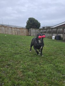 Once Maggie has learnt she can trust you, her real personality shines through. She is fun, goofy, full of beans and runs around our paddocks happily playing with her toys all day long. She can be very affectionate and enjoys being fussed but beware, your face will be covered with slobbery kisses!