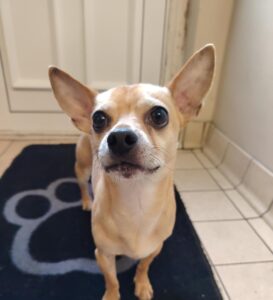 Maggie is a chunky girl at the moment and is currently on a diet. She will have to continue this in her new home until she reaches her goal weight!