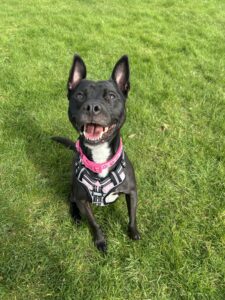 Poppy is a delightful, whirlwind of happiness and exuberance who loves to say hello to everyone she comes across. She is boisterous and needs help to learn to keep her four paws on the ground so needs a committed owner to work on this but, in the short time she has been with us, has already proven how intelligent she is and keen to learn. She is full of character and likes to roll around in the grass or play a good game of tug of war so is sure to keep her new family entertained!