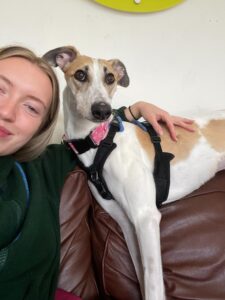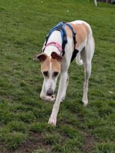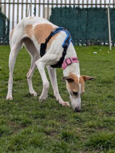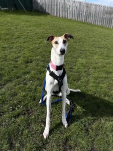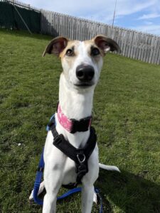 Willow is a super friendly girl who absolutely adores being in the company of people. She is always keen to make new friends though she does not realise her size and can be boisterous so would be best suited to an owner who can teach her to keep all four paws on the ground. She has a huge zest for life- from her walks to running around the paddock chasing after a toy, it’s all very exciting! She would really enjoy going hill walking where she can burn off some of her energy or may even like doing some scent work.